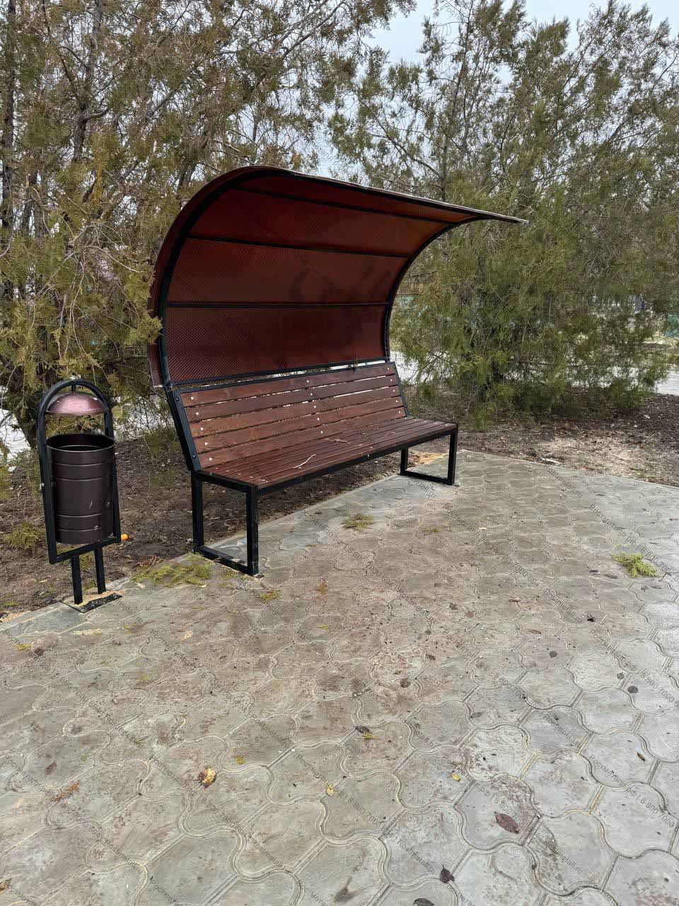 Материал Металлический каркас, скамья-дерево хвойных пород, навес-поликарбонат