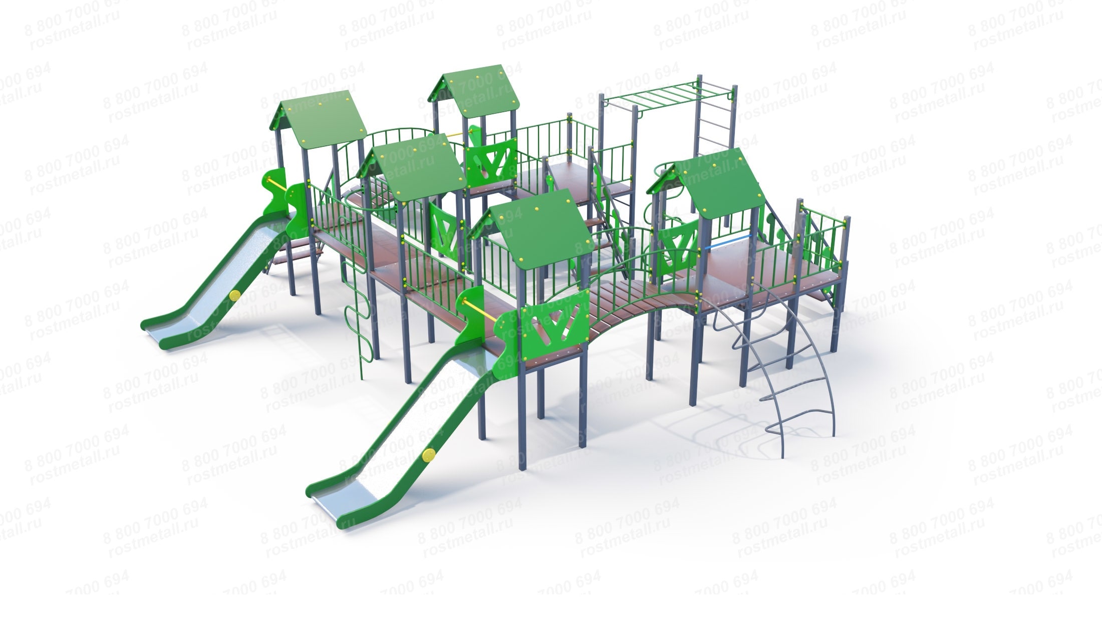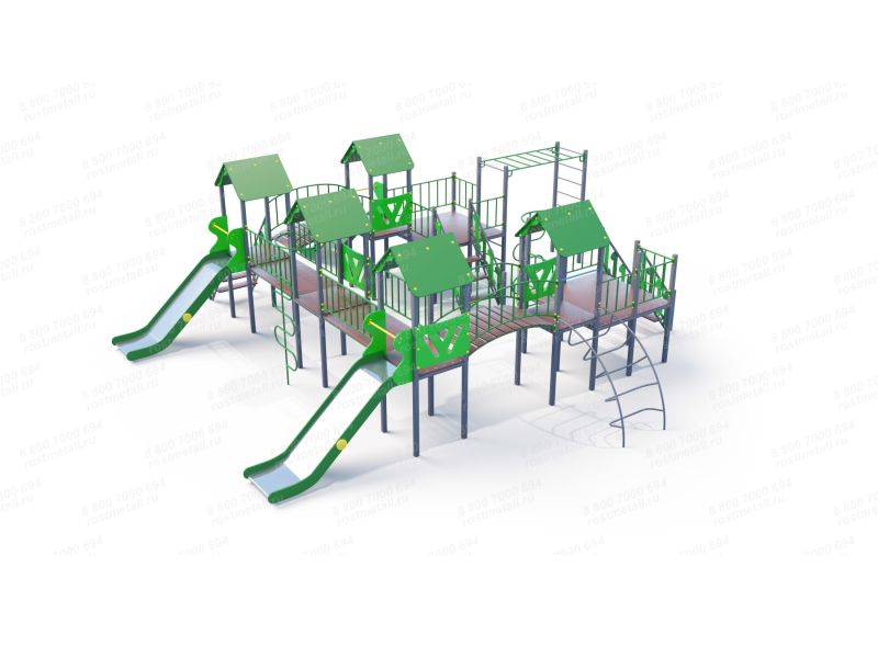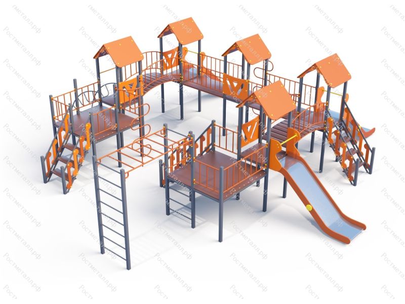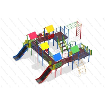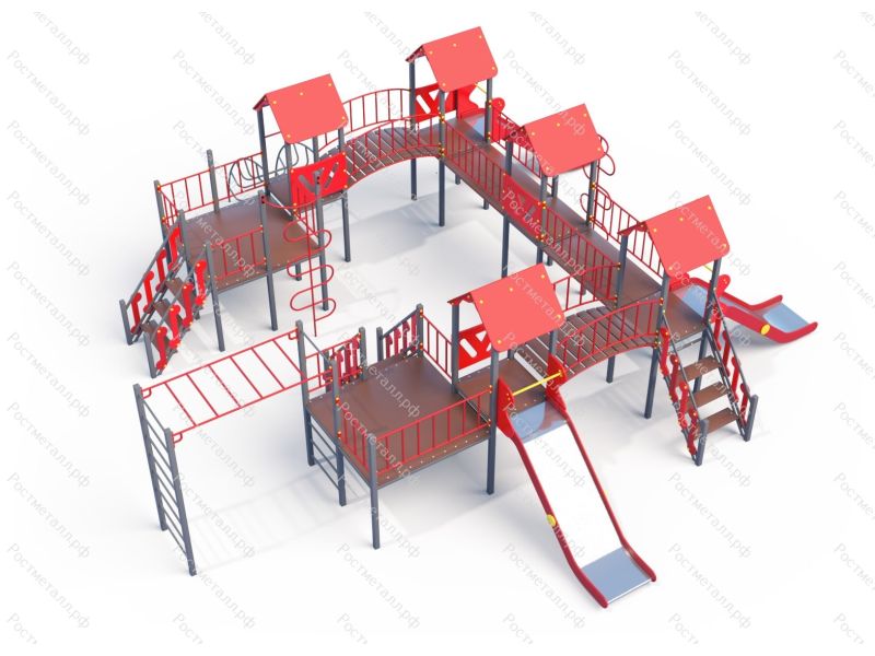 | Комплектация | 5 башен, 2 смотровые площадки, 3 ската из нержавеющей стали, 3 подъёмные лестницы, 2 шеста-змейки, 2 мостика прямых, 2 мостика полукруглых, лаз дуга, рукоход, шведская стенка. |
