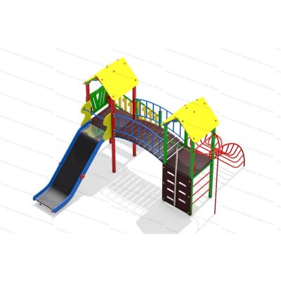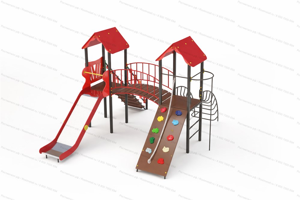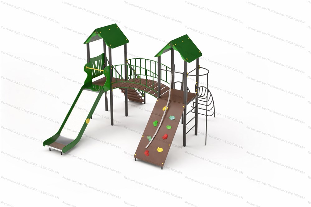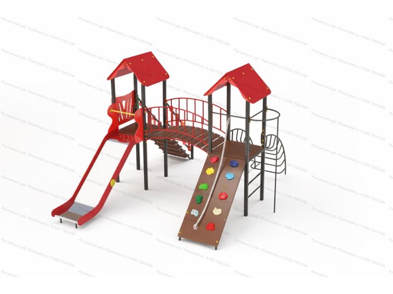 | Комплектация | Две башни, мостик полукруг, скат из нержавеющей стали, подъёмная лестница, лестница-дуга, шест, подъёмник с канатом. |