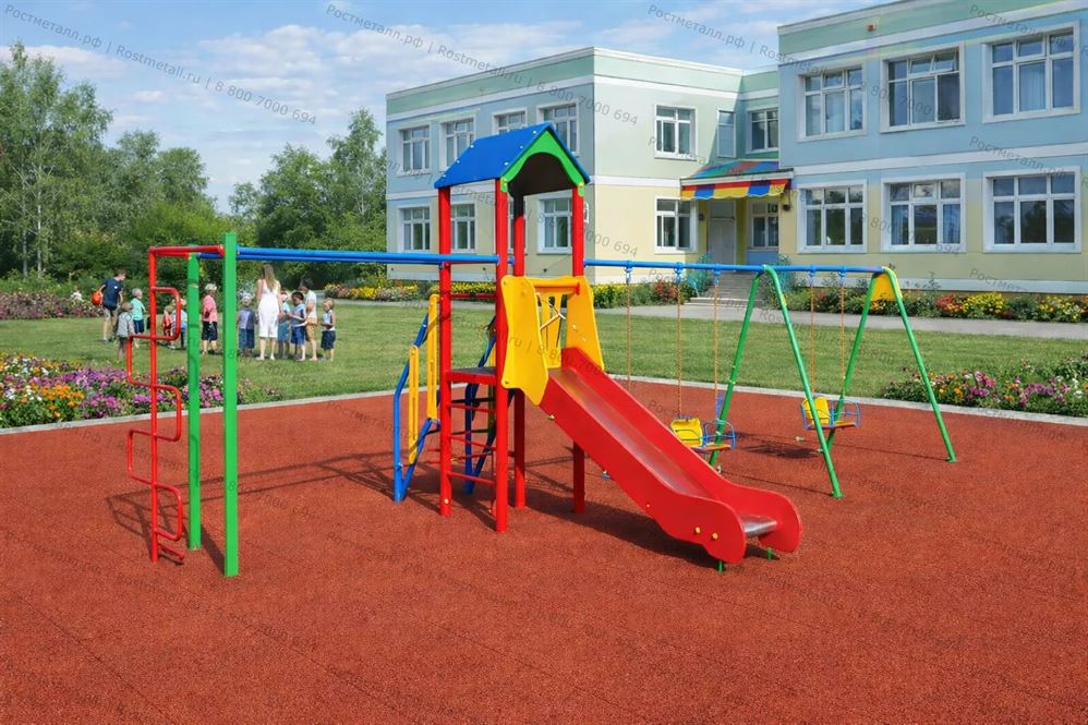 Длина 7394 мм Ширина 3700 мм Высота 3011 мм Стойки: профильная труба сечением не менее 60х60 мм Панели и крыши, спинки и сидения качелей: влагостойкая фанера ФСФ толщиной не менее 15 мм Элементы декора лестницы: влагостойкая фанера ФСФ толщиной не менее 18 мм Элементы конструкции: круглая труба диаметром не менее 20, 26, 32, 42 мм, профильная труба сечением не менее 20х20, 40х20, 40х40 мм. Полы: ламинированная фанера FW толщиной не менее 18 мм Окраска: Металлическая поверхность - порошковое окрашивание, фанерные элементы - вододисперсионное окрашивание. Бетонирование в землю не менее 400 мм Комплектация: Одна башня с двускатной крышей, двухместные качели, лестница подъемная с перилами, горка-скат из нерж.стали со щеками с высотой посадочного места не менее 1200 мм, Рукоход прямой, Шест змейка. Горка должна иметь стартовую площадку с перекладиной, заставляющую ребенка присесть, полосу разгона и участок торможения. Наличие бортов горок высотой не менее 150 мм обязательно в целях исключения травмирования детей. Материалы элементов: Башня - стойки профильная труба сечением не менее 60х60 мм, полы ламинированная фанера FW толщиной не менее 18 мм, крыши, ограждения - влагостойкая фанера ФСФ толщиной не менее 15 мм. Спусковая горка - каркас должен состоять из профильных труб сечением не менее 40х20 мм полос металла толщиной не менее 4 мм. со скатом из нержавеющего цельного листа толщиной не менее 0,8 мм, и бортами из влагостойкой фанеры ФСФ толщиной не менее 18 мм, уши и добор горки из фанеры ФСФ толщиной не менее 15мм. Лестница с перилами - каркас должен состоять из профильных труб сечением не менее 40х40 и 40х20 мм полос металла толщиной не менее 4 мм. Настил ступеней - ламинированная фанера FW толщиной не менее 18 мм, декоративные элементы перил влагостойкая фанера ФСФ толщиной не менее 18 мм. Качели двухместные- не менее 2-х стоек из круглой трубы диаметром не менее 42 мм, не менее 2-х перекладин из круглой трубы диаметром не менее 42 мм с креплениями под подвесы, не менее 2-х подвесов из труб диаметром не менее 25, к которым приварены крепления для цепи и полосы из листового металла толщиной не менее 4мм с отверстиями для крепления спинки. В основании сидушки должна располагаться профильная труба сечением не менее 20х20 с отверстиями под крепления сидушки. Сидушка и спинка должны быть изготовлены из фанеры ФСФ сорта толщиной не менее 15мм. Подвесы должны быть изготовлены из оцинкованной цепи покрытые термоусадкой.. Рукоход- продольные трубы сечением не менее 32 мм, поперечные трубы сечением не менее 25 мм. Шест-змейка - основание труба диаметром не менее 32 мм, змеевик - труба диаметром не менее 25 мм. |