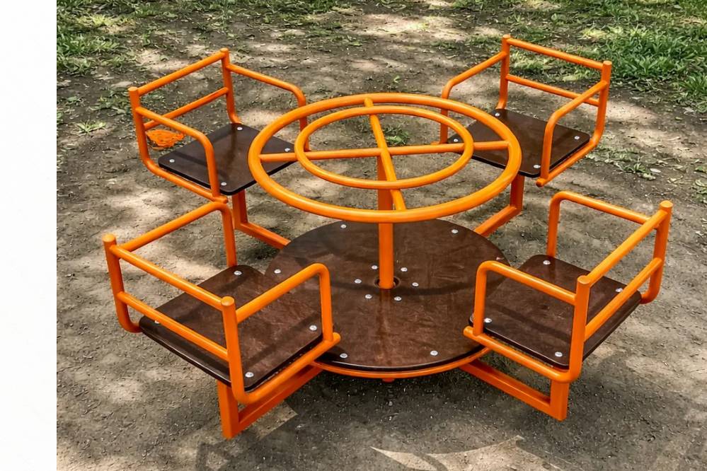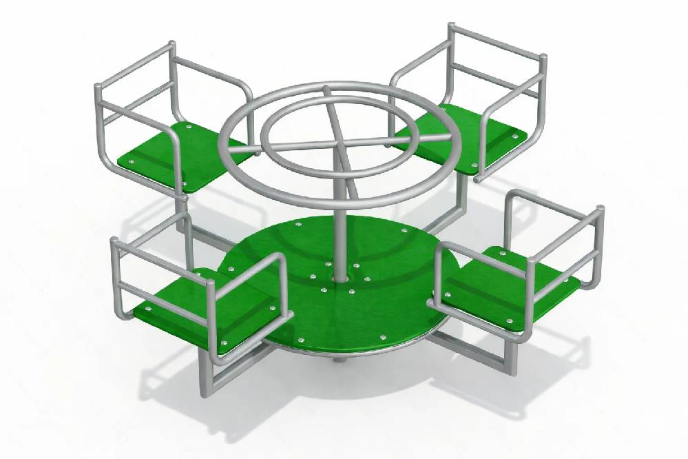 Карусель Кватро, наверное, самый любимы элемент из всех, которые мы заказывали. Она никогда не пустует, на ней всегда катаются дети. Сделана добротно, красивая, яркая. Довольны не только дети, но и взрослые.