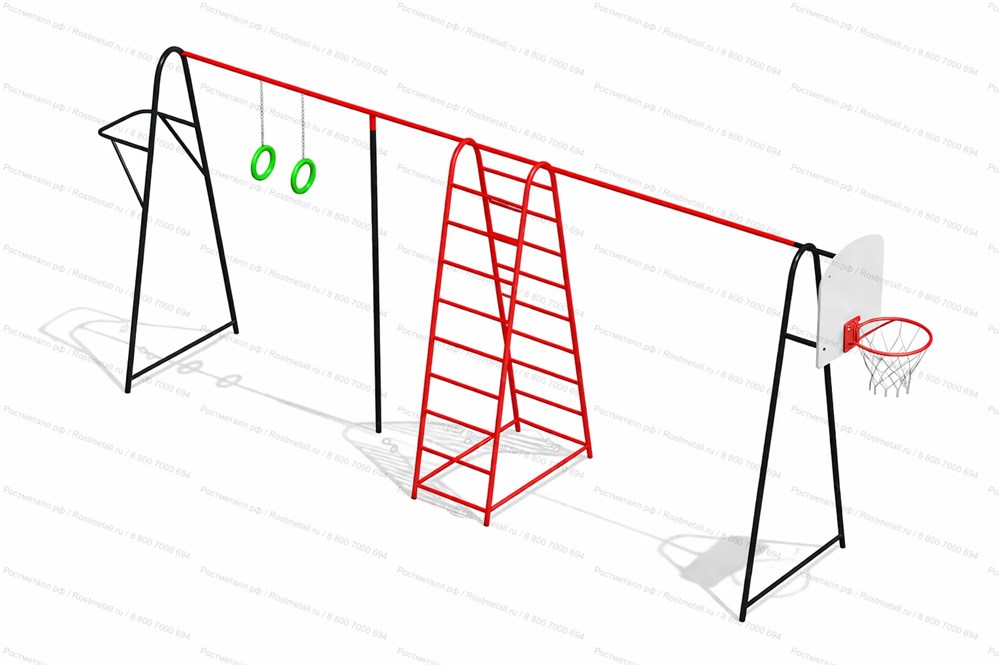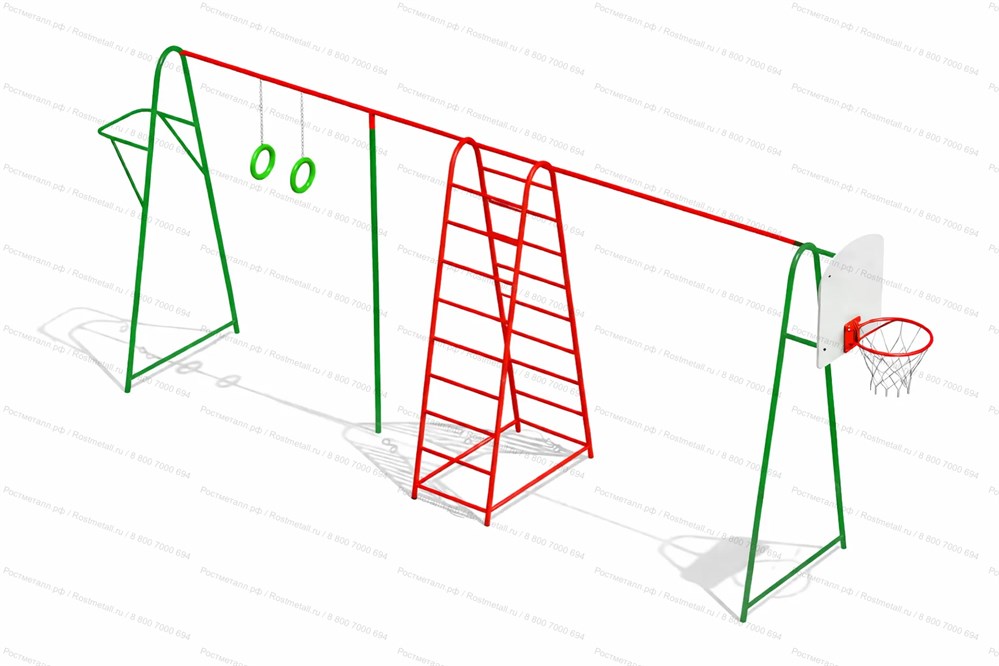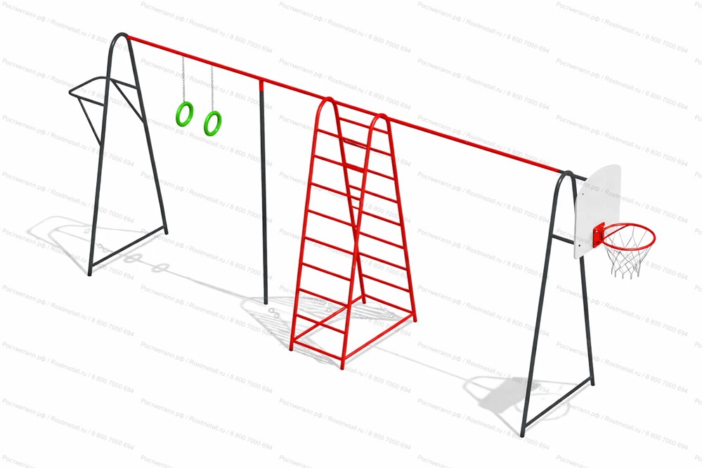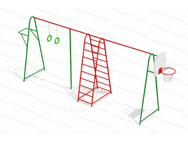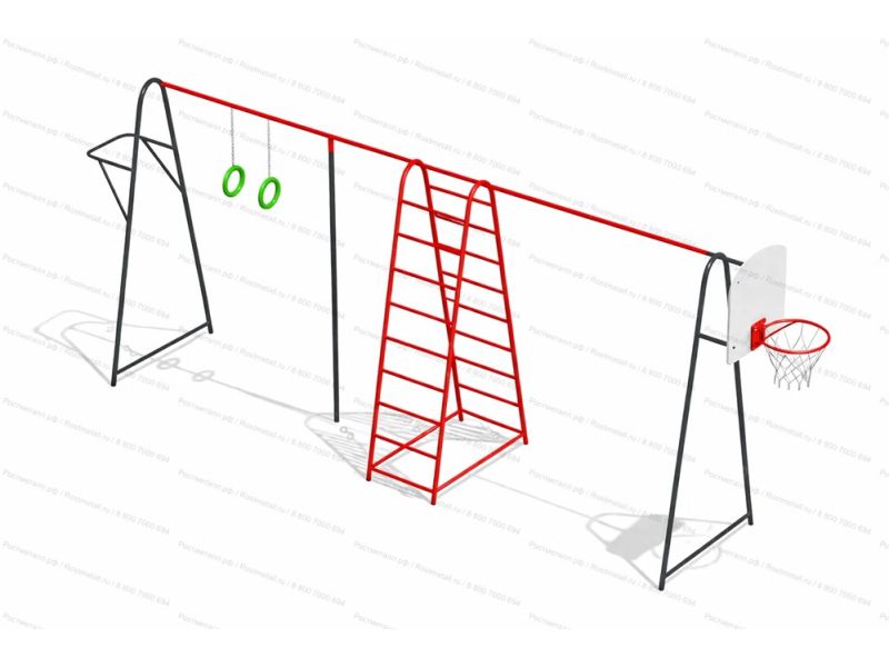| Комплектация | Турник, кольца на канат, двухстор. лестница, лестница, баскетбольный щит. |